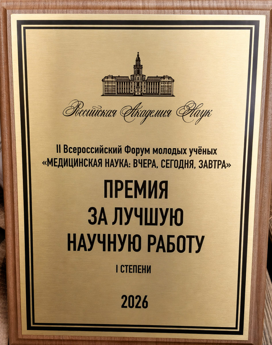 Награждение состоялось в рамках II Всероссийского форума молодых ученых «Медицинская наука: вчера, сегодня, завтра», прошедшего 16–17 апреля 2026 года под эгидой Российской академии наук. Форум является значимой площадкой для объединения научного сообщества, обмена опытом и представления результатов исследований молодых специалистов. По итогам форума лауреаты, занявшие первое место, были награждены именными номерными знаками отличия.